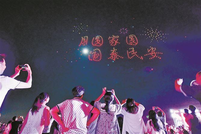 同安区以“我与明月 山海同安”主题文旅活动为牵引,开展各具特色的文旅活动和促消费活动,千架无人机点亮夜空活动被央视报道。(通讯员 夏海滨 摄)