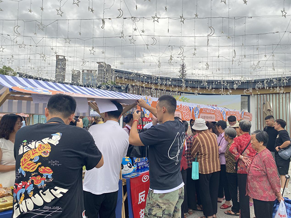 蔗内米粉、云洋面线、三秀山山药、莲花高山茶、褒美进士芋等特色农产品琳琅满目,“大家看这里产品的包装是不是很有特色,这些是我们的省级非遗同安农民画,非常有本土风味。”主播仇浩向观看直播的网友们展示市集上的产品。