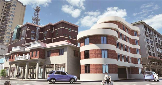 南门路老旧街区更新工程侨联大楼节点效果图。