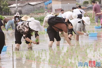 今年4月,褒美村的农田里迎来了一群特殊的“农夫”——200多名市民游客卷起裤腿,赤脚踩进温润的水田,在农户指导下学习分秧、插苗,体验“汗滴禾下土”的辛劳与喜悦;一旁的“浑水摸鱼”比赛现场更是水花四溅、笑声不断。这场“播撒希望·耕耘春天”农耕体验活动,让参与者在泥土气息中感受传统农耕文化的魅力,也推开了本地“进士芋”“凤梨穗”等优质农产品的展示窗口。