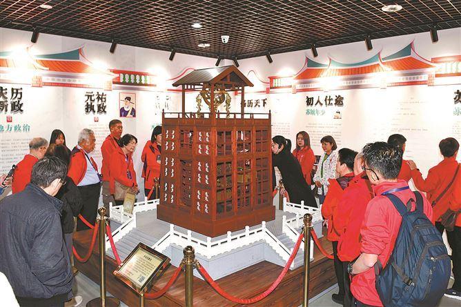 在苏颂纪念馆,考察队伍参观水运仪象台模型。(本组图/夏海滨 摄)