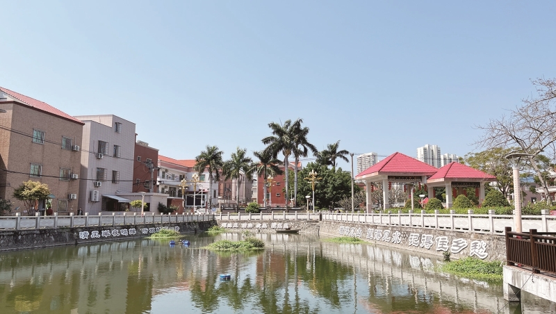 ▲水清岸绿的五显镇垵炉村公园池塘。