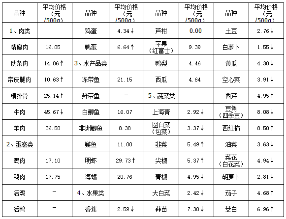五、蔬菜类产品平均价格总体微降。本周,受监测的19种蔬菜类产品平均价格呈6升13降,微幅回落态势。其中白萝卜平均价格回落幅度最为明显,降幅达9.01%,为价格波动之首;茄子、西芹、尖椒、韭菜、茭白、西红柿等6种蔬菜平均价格分别上涨0.45%、1.00%、2.90%、5.08%、6.42%、7.19%;其余12种蔬菜类产品平均价格回落幅度均在8.50%以内波动。本周主要农副产品具体均价涨跌情况,详见图二。