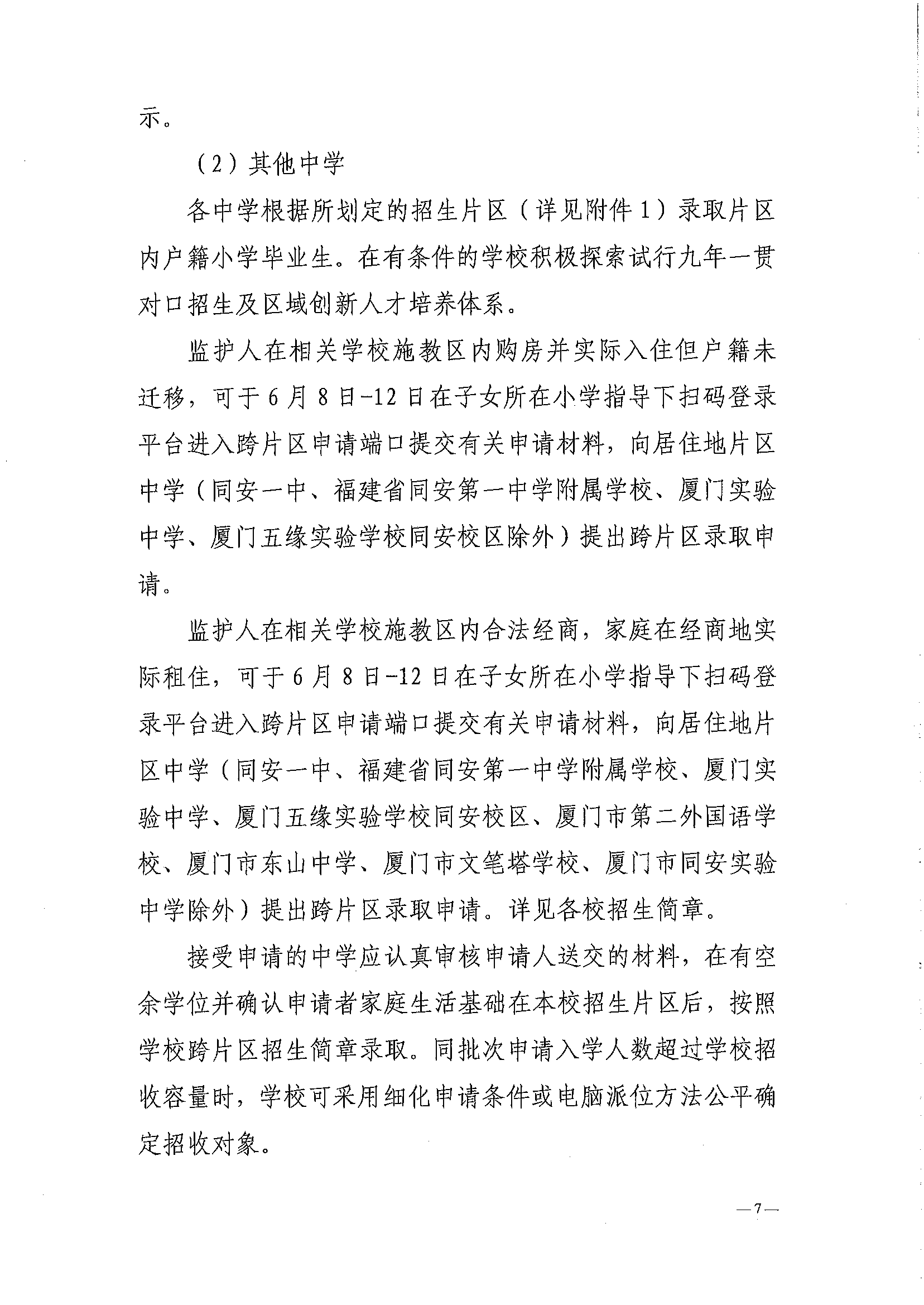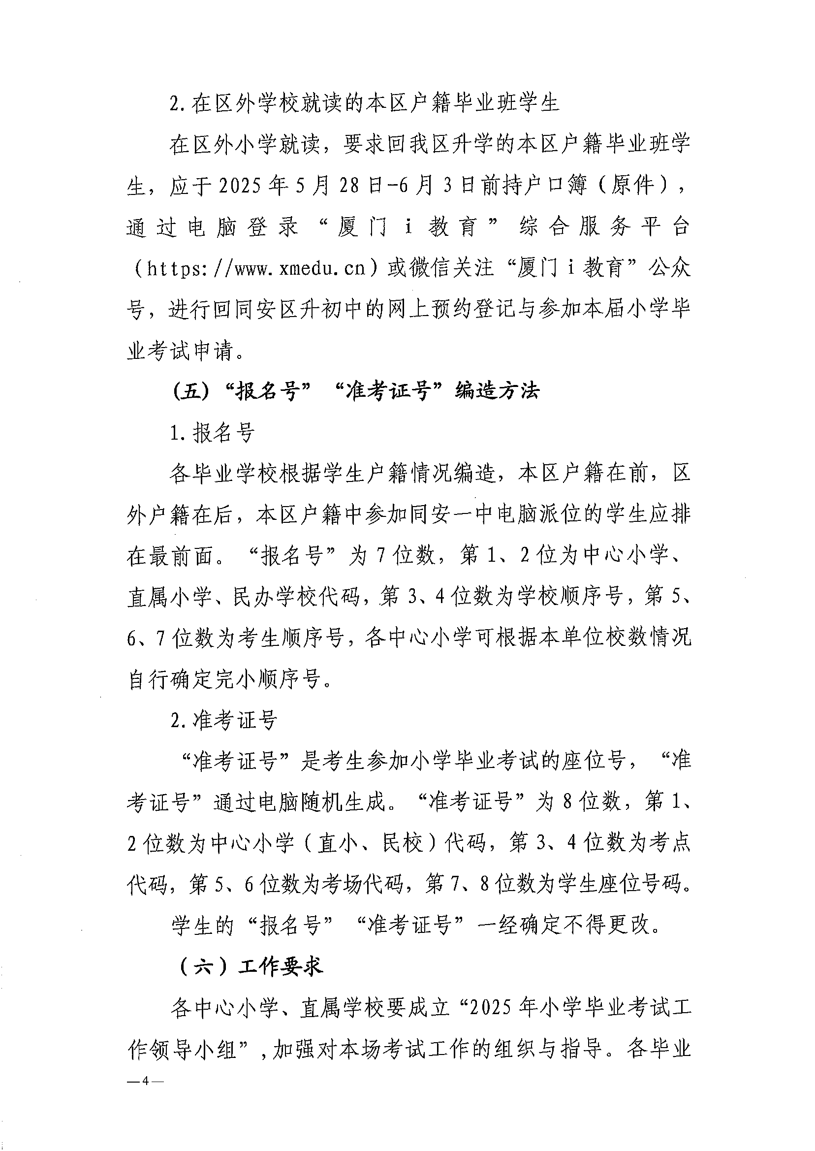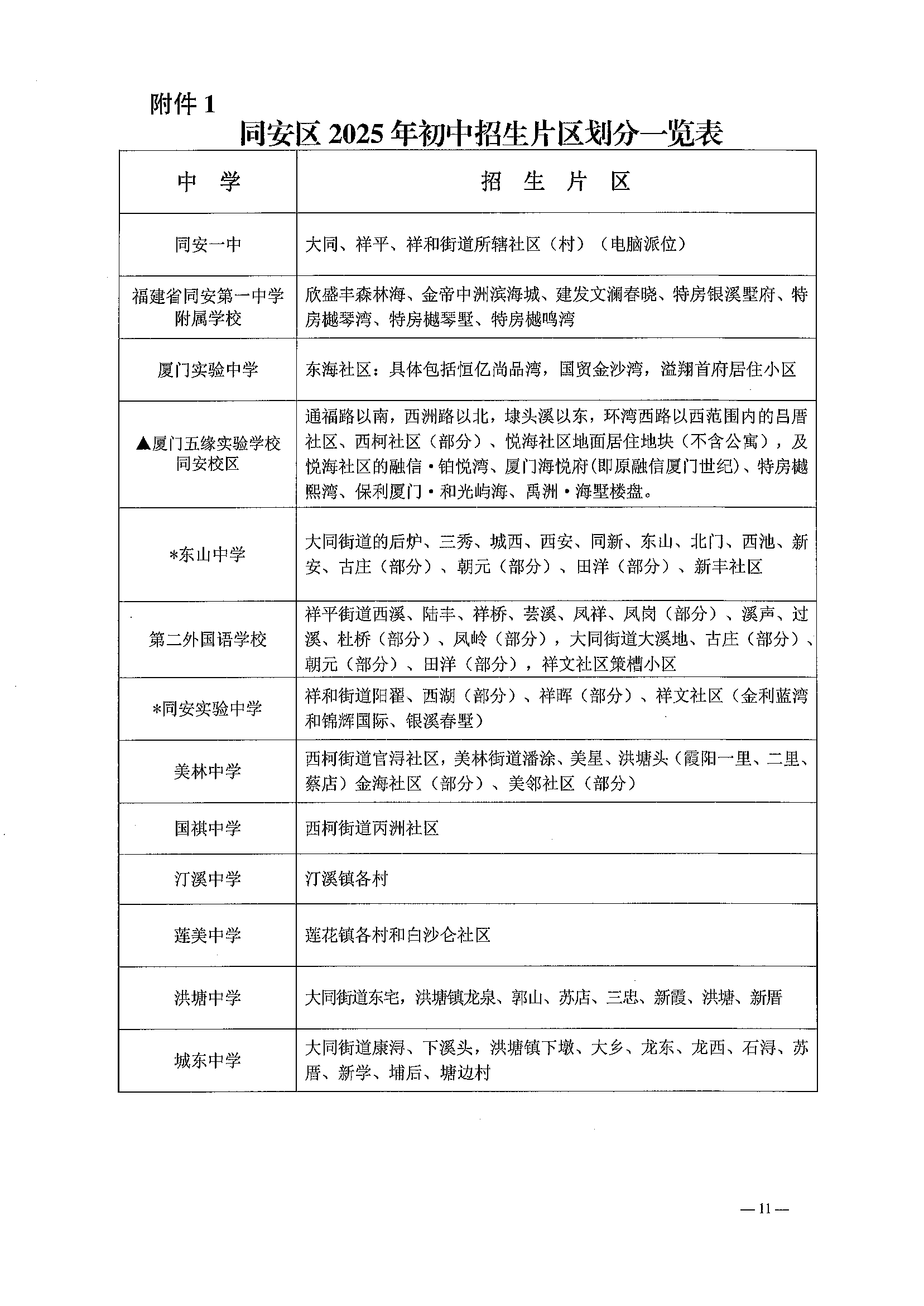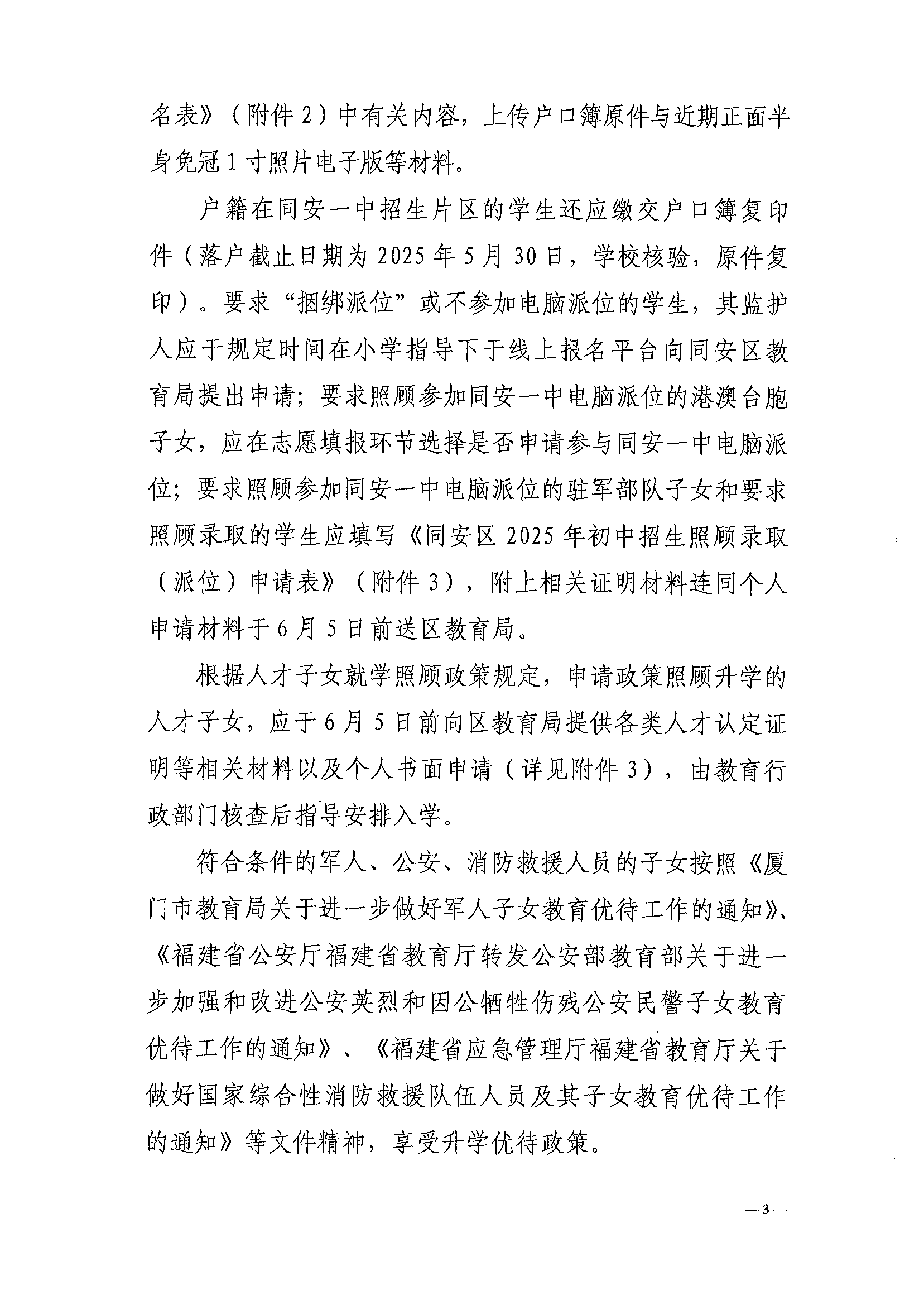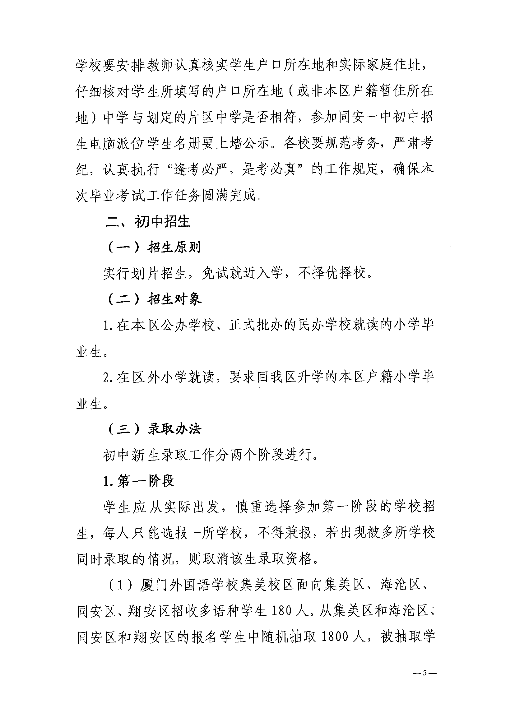 关于印发同安区2025年小学毕业和初中招生工作意见的通知