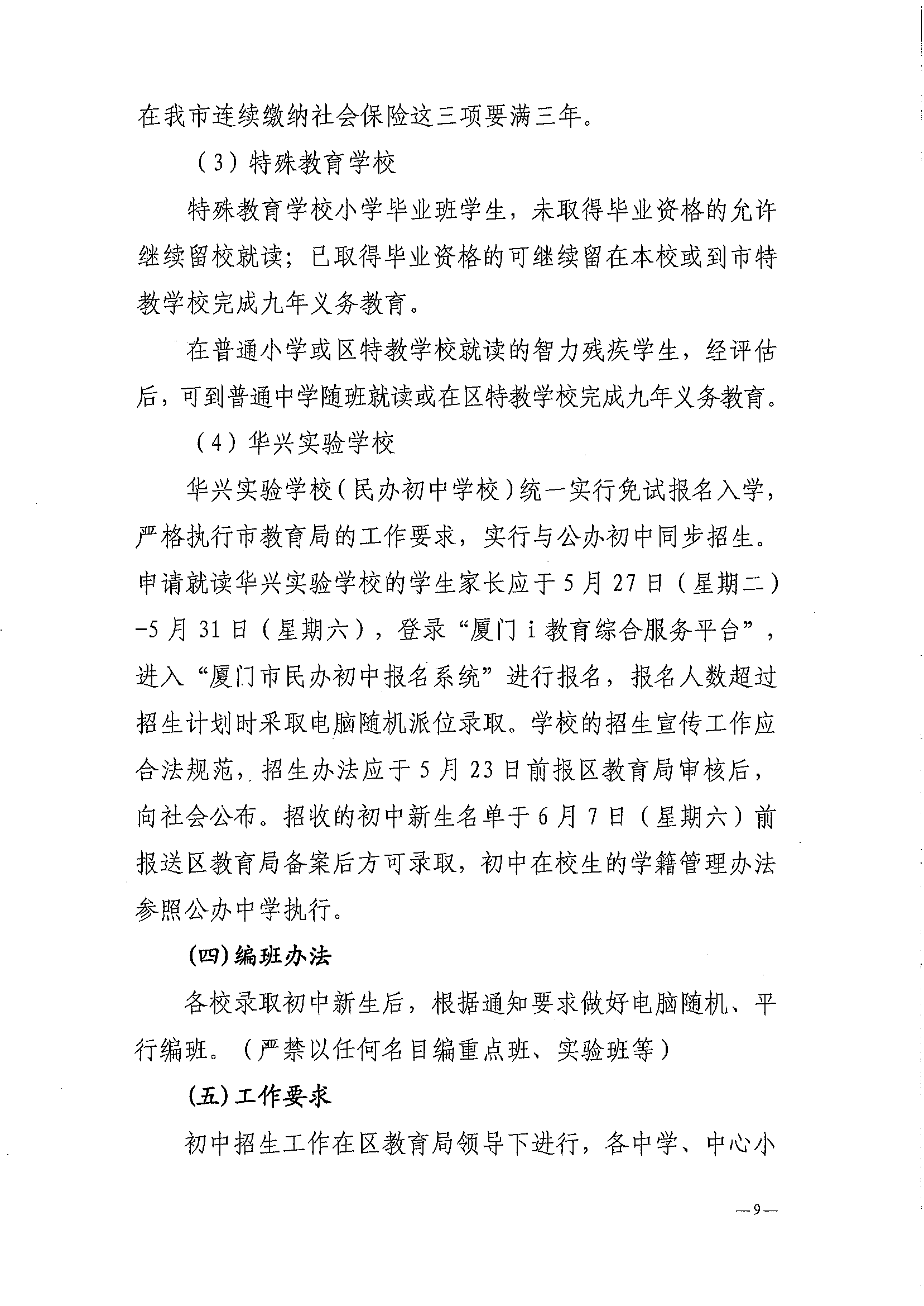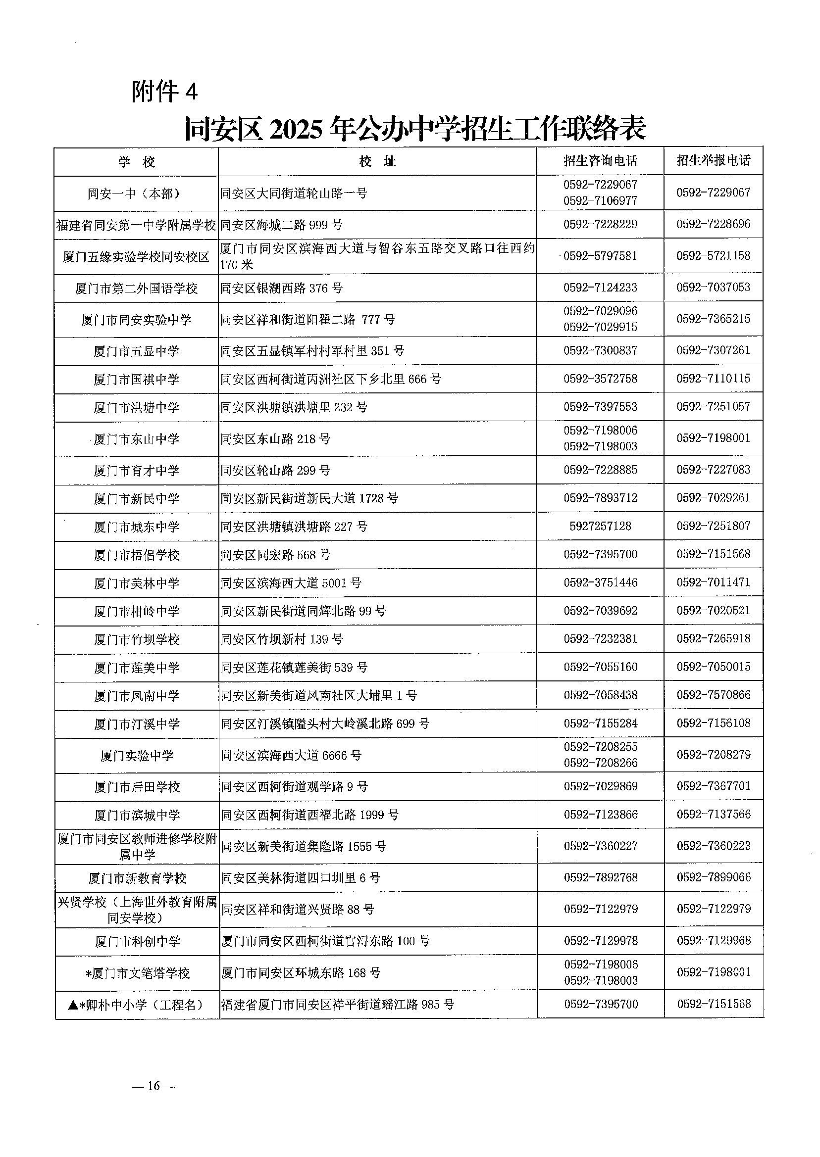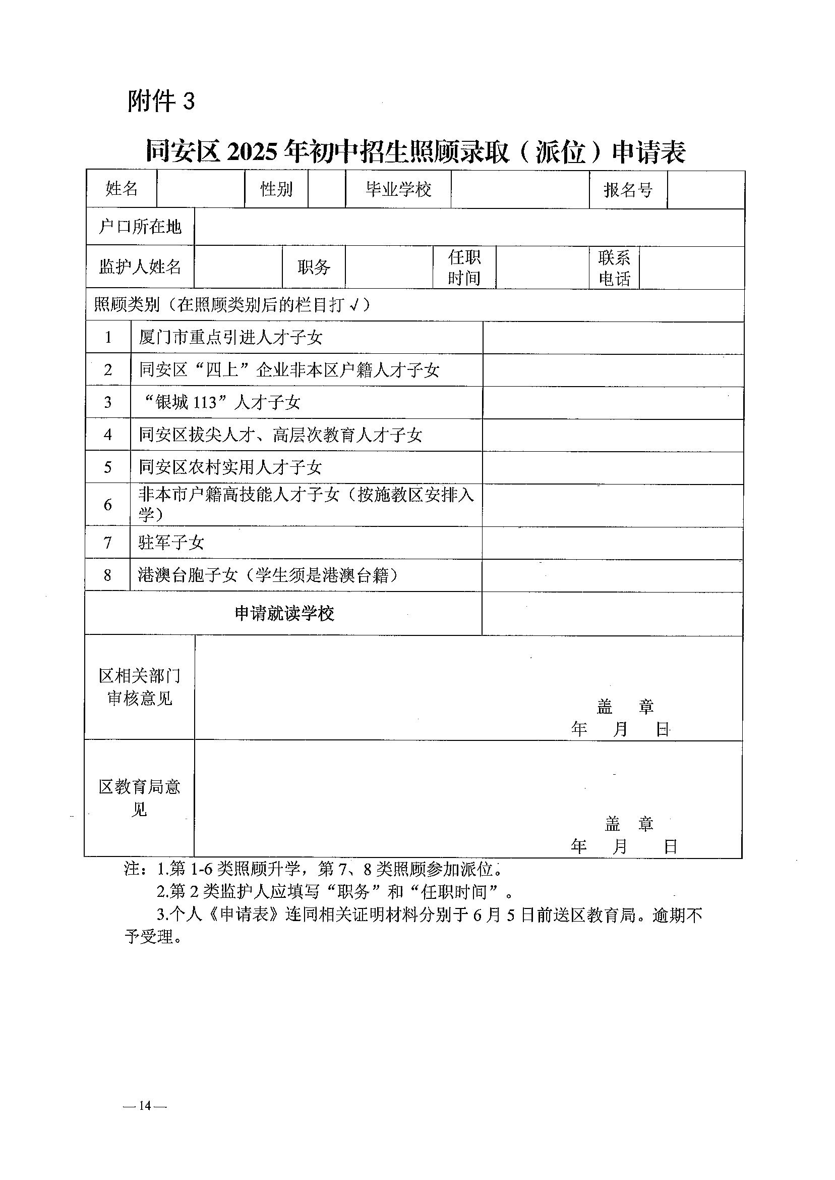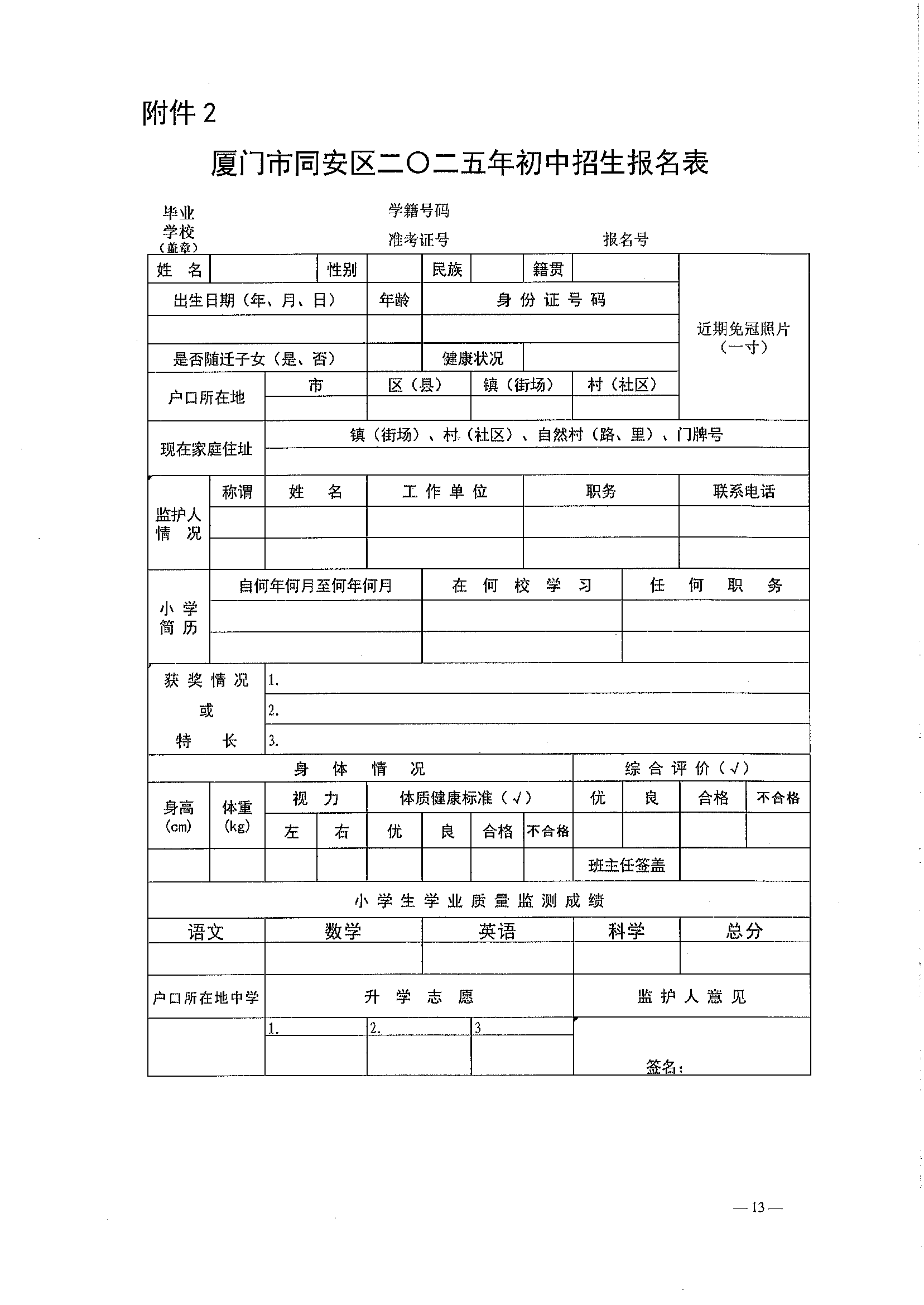 关于印发同安区2025年小学毕业和初中招生工作意见的通知